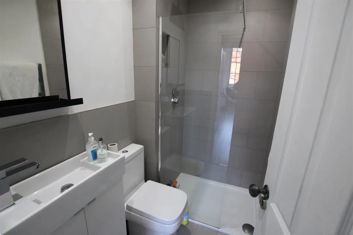 - Modern fitted kitchen with integrated appliances and a stylish shower room