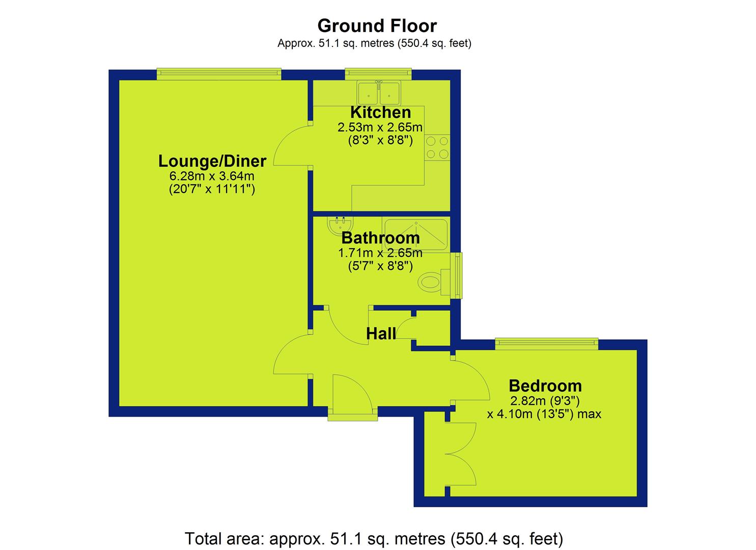 Inside, the property welcomes you with an entrance hall leading to a spacious living room, a stylish fitted kitchen, and a sleek three-piece bathroom suite. A generously sized double bedroom, complete with built-in wardrobes, adds to the comfortable layout.