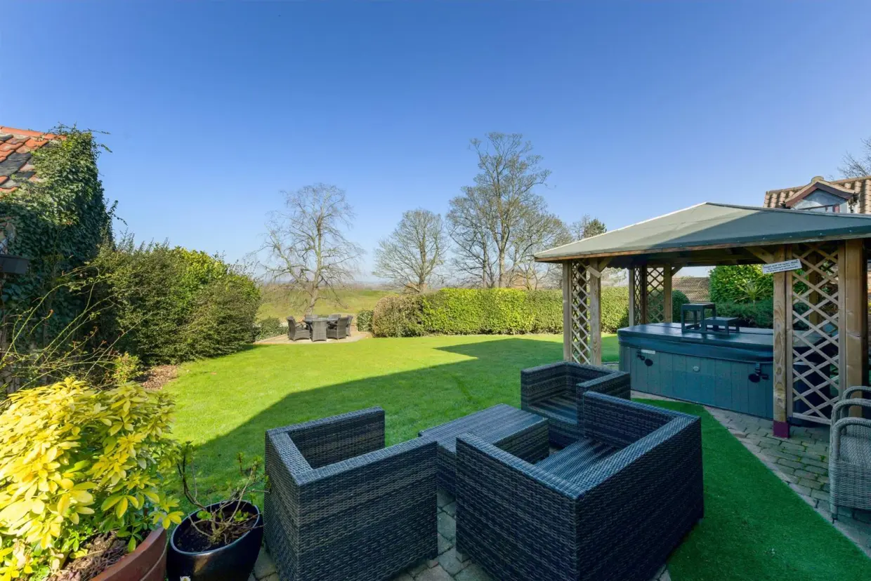 The front of the property provides two separate gated entrance driveways to the main house and the detached annex, with parking for multiple cars. To the rear of the property is a private enclosed garden which is mostly laid to lawn and benefits from a patio and further entertaining space at the end of the garden that looks out to the golf course and countryside.