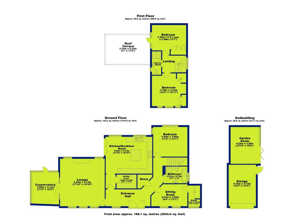 In addition, there are four bedrooms spanning two floors, a small study off one of the guest bedrooms, small utility, two modern bath/shower rooms and a delightful roof terrace leading from one of the upstairs bedrooms.