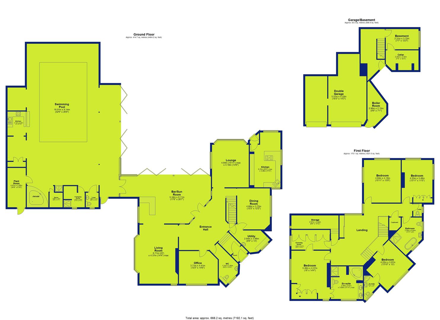 - Indoor pool complex with Jacuzzi, kitchen & bi-fold doors to garden