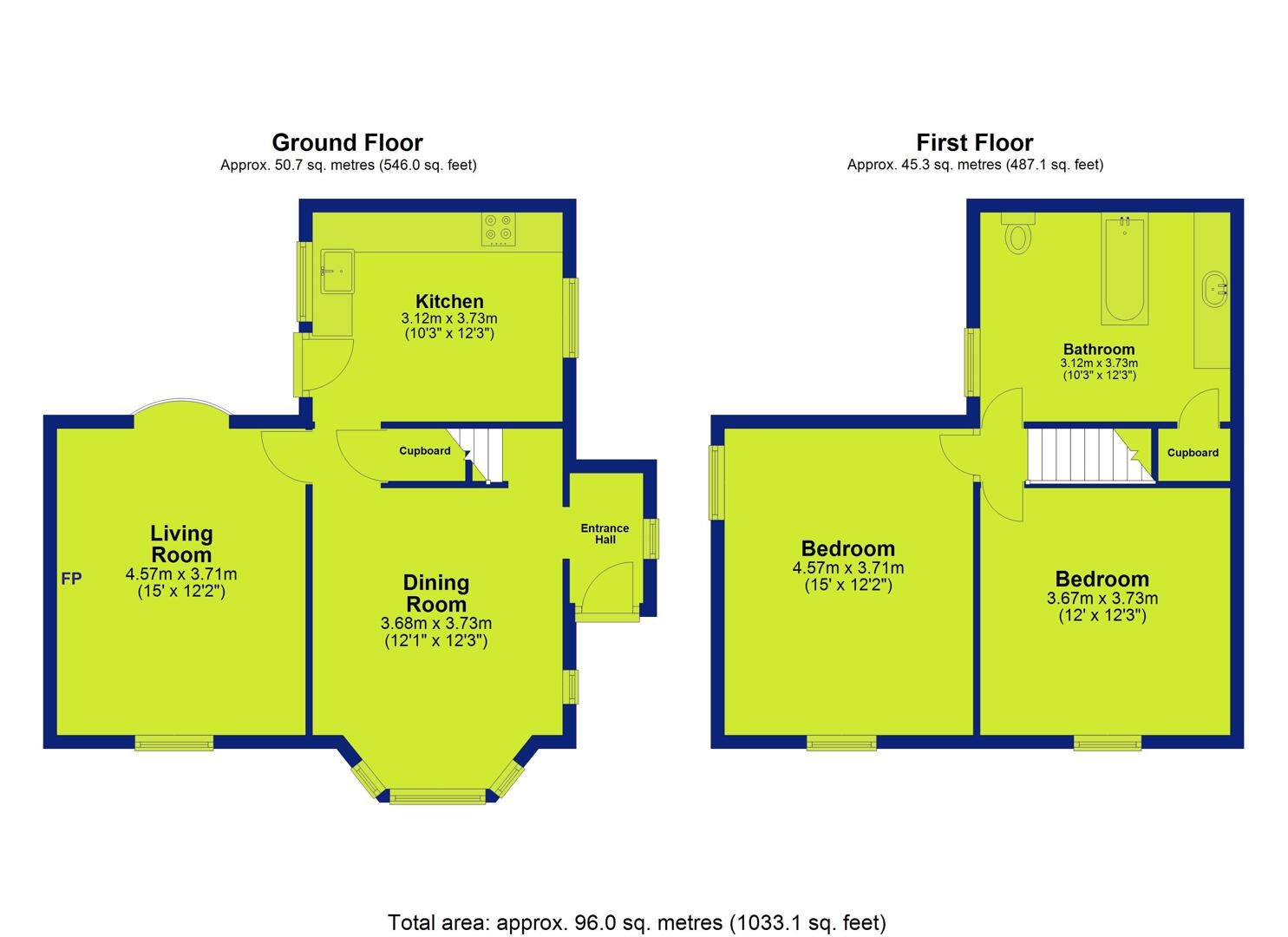 - Two reception rooms